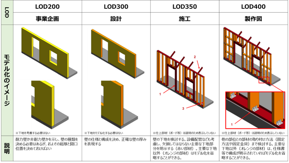なお、この仕様は設計や施工の各フェーズに対して特定のLODを規定するものではなく、どの段階でどのLODを使用するかは各プロジェクトチームが決定するものとされています。